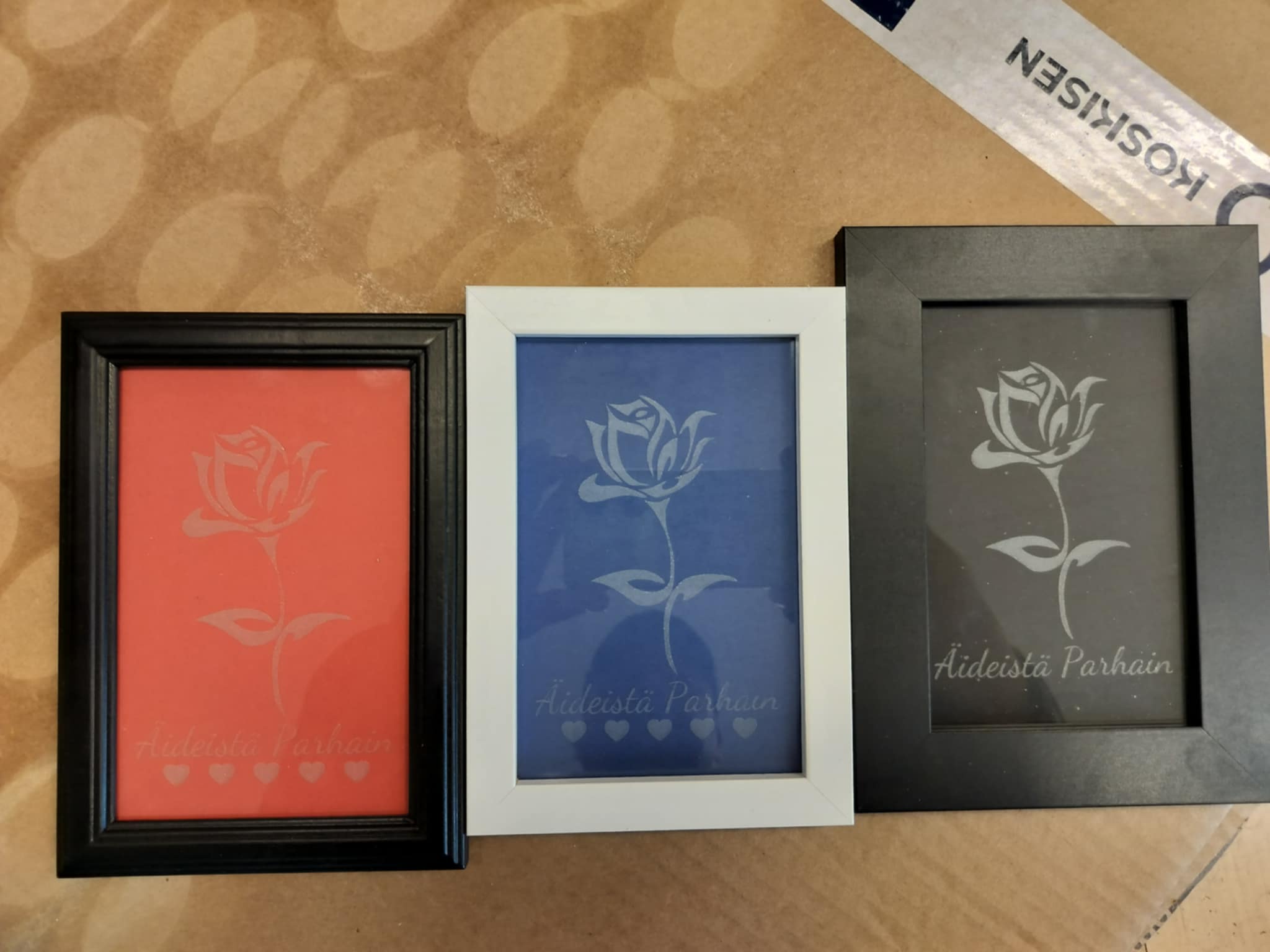 Olemme intohimoisia laserkaiverruksen asiantuntijoita, jotka uskovat laatuun ja asiakastyytyväisyyteen. Teemme työtämme sydämellä ja huolellisuudella, jotta jokainen tuote on ainutlaatuinen. Arvostamme luovuutta, tarkkuutta ja rehellisyyttä. Meidän kanssamme saat aina parasta palvelua ja upeita luomuksia!
